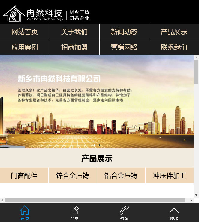 新鄉(xiāng)市冉然科技有限公司是一家壓鑄行業(yè)的企業(yè),網(wǎng)站采用整站html制作,pc+mobile 雙模瀏覽,簡單優(yōu)化元素融于道理面 “新鄉(xiāng)壓鑄”“河南壓鑄” 關(guān)鍵詞均在第一展示,而且不是一個搜索引擎。