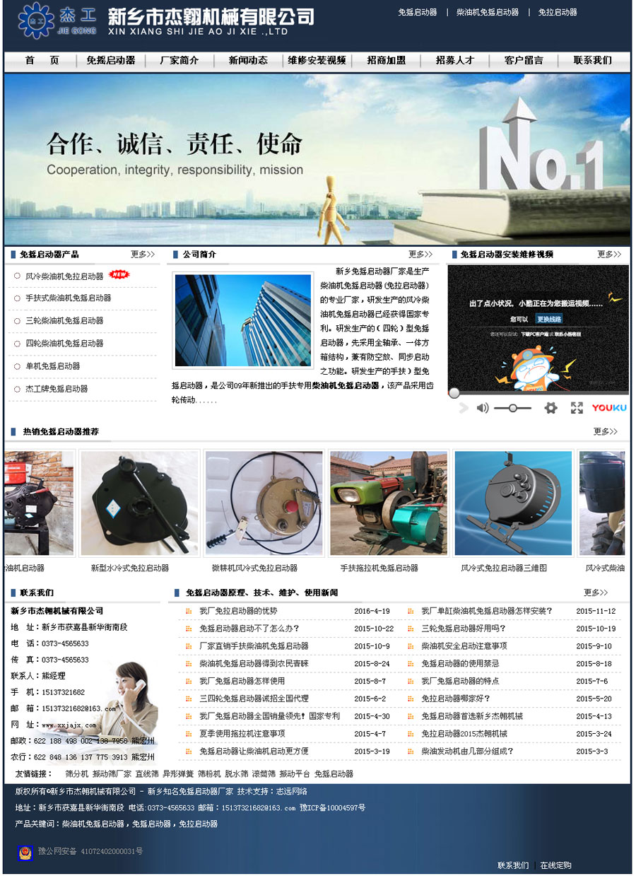 新鄉(xiāng)市杰翱機械有限公司是生產(chǎn)柴油機免搖啟動器的專業(yè)廠家,研發(fā)生產(chǎn)的JAQD-A(四輪)型啟動器,最先采用全軸承、一體方箱結構,兼有防空放、同步啟動之功能。產(chǎn)品啟動工作噪音小、自動儲能慢、使用故障率低,是替代四輪搖車的理想產(chǎn)品。研發(fā)生產(chǎn)的JAQD-C(手扶)型啟動器,是公司09年最新推出的手扶專用啟動器,該產(chǎn)品采用齒輪傳動、帶減壓啟動、單向器儲能,具有防空放、儲能慢、操作簡單維修方便之功能,是手扶免搖啟動的最理想產(chǎn)品。